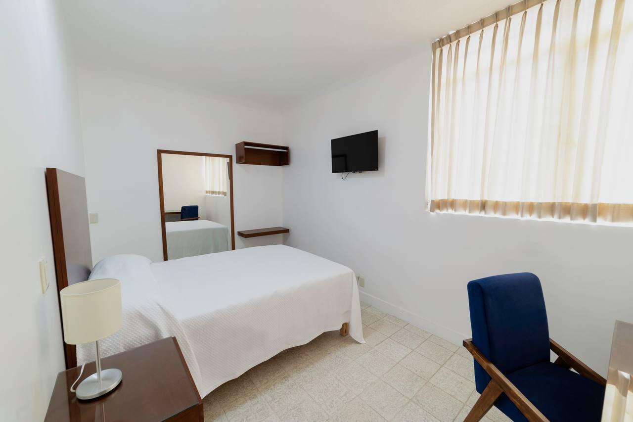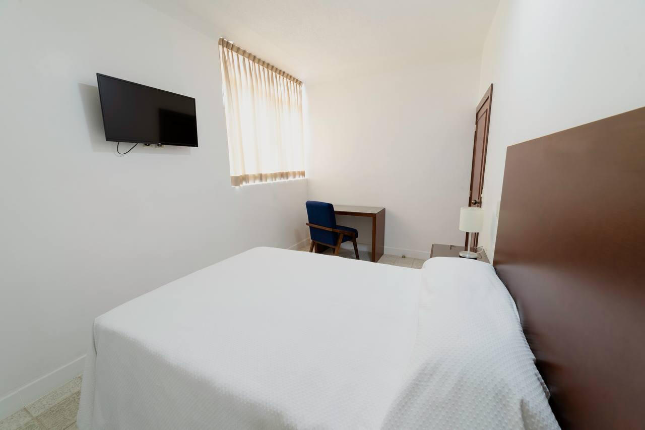 Al igual que las habitaciones sencillas, cuenta con una cama matrimonial, closet, escritorio, smart tv. Con la diferencia de que su baño se encuentra fuera de la habitación y se comparte con otra habitación.