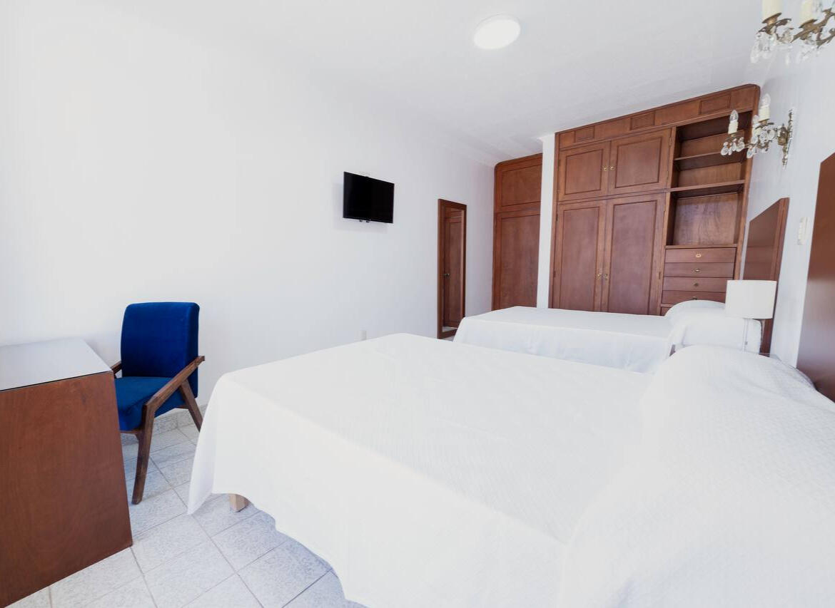 La única habitación con balcón, con vista a la calle Moctezuma. Cuenta con dos camas matrimoniales, closet, escritorio, smart tv y baño compartido (de igual forma se encuentra fuera de la habitación).